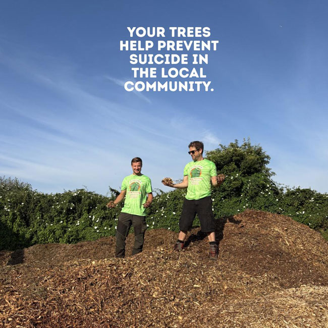 Every penny that is generated by your woodchip goes directly to supporting Hector’s House, a mental health and suicide prevention charity. Your contribution helps fund their free helpline services, educational workshops in schools and workplaces, and vital resources for those struggling with their mental health. It also enables them to provide support for families affected by suicide, raising awareness and breaking the stigma around mental health. By choosing to donate your woodchip, you’re helping to save lives and build a stronger, more supportive community. Watch our video below to find out more.